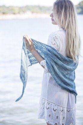 Lake Song is worked from one tip to the opposite side of the triangle, creating a slightly asymmetric shape. Serene and harmonious, this ethereal beauty reminds of tranquil waters.