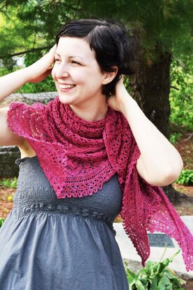 An elegant shawl can become one of the most important accessories in a knitter’s wardrobe. On cooler days it can be draped and overlapped comfortably around your neck and shoulders, and on lighter spring and summer days can be pulled into use as a bit of elegant protection from a stray breeze. And for those occasions when casual attire simply isn’t enough, there is nothing like lace to amp up your outfit – and the attention!