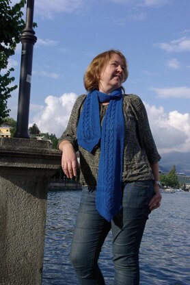 The scarf is inspired by the old legend of North East England of the Lambton Worm. It can be worked long (as per the pattern) or shorter using 100g of yarn.