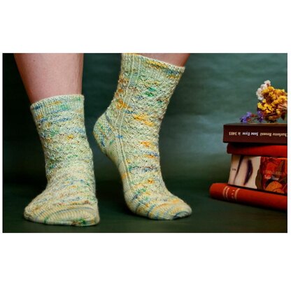 Lando socks are knitted from the cuff down with a slip-stitch reinforced heel flap and gusset. They feature an easy to memorize textured stitch pattern on leg and top of the foot using decreases and increases only.