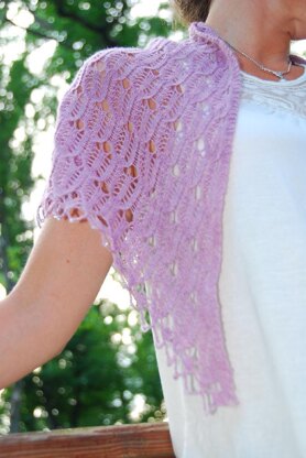 The lace motif of this shawl is reminiscent of the church windows, and also reflects the formality of the gardens. Worked from the top down using a garter stitch tab, the delicate lace fabric gives a beautiful drape. The option of using beads in the bind off gives more weight to the edge.
