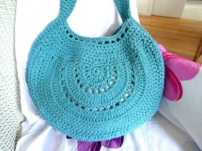 I have designed the bag in three pieces. A front and a back section, which are identical, and a long circular piece which forms the strap. The strap wraps around both sides of the bag giving it strength and durability. For this pattern I have used a 12 ply chunky cotton/acrylic but I have also made this bag in a 10 ply cotton and it looks just as good but will be a little smaller.