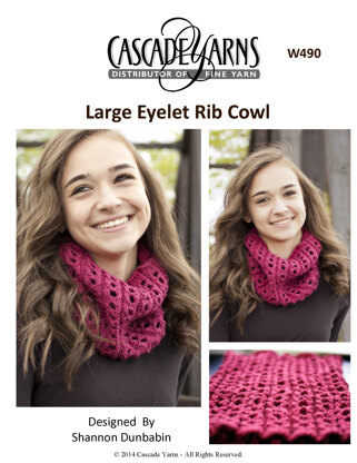 Large Eyelet Rib Cowl in Cascade Yarns Venezia Worsted - W490 - Downloadable PDF est un modèle de Tricot Intermédiaire gratuit par Shannon Dunbabin, disponible au format PDF téléchargeable et comprend des instructions en Anglais. Super amusant à réaliser, ce modèle pourrait être votre prochaine œuvre d'art !