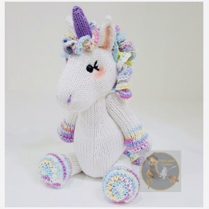 Say hello to Larna the Unicorn!! She is my brand new knitting pattern as modelled from my very own Lavender the Unicorn crochet pattern