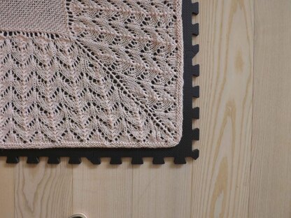 The Late Summer Baby Blanket is a baby Blanket that has a garter stitch middel, a lace pattern and a garter stitch edge. The blanket is knitted in one piece starting at the middle of the blanket.