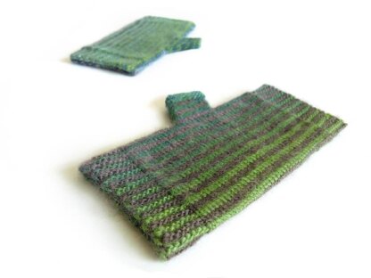 Their interesting construction allows for many possibilities. They can be knit and then seamed, or finished with Kitchener stitch or a three needle bind off. The stripes of these mittens do not run in stripes around the mittens as with other patterns, instead they run vertically up the hand as the mittens are knit sideways. The striping is continued up the thumb to finish the mitts off.