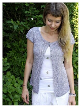 Eine perfekte Weste für kühle Sommerabende. Gestrickt von oben nach unten ohne lästige Nähte. Für Anfänger mit schlichten kurzen Ärmeln und für alle anderen mit kleinen Knopf-Details.