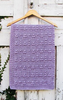 Baby blanket with rich texture created by front post stitches and bobbles.