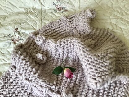 So much texture and so chunky soft for baby! Sumptuous and chic all in one! It s feather light yet warm. The blanket is a knit pattern with a crocheted edge and rose motifs. Fits any decor in any room.