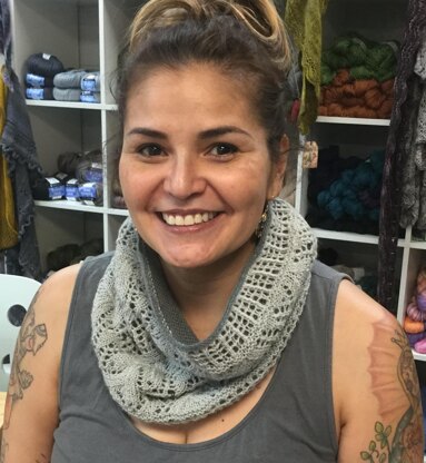 This cowl is warm and feminine! It's not too difficult, but not for true beginners. The lace is in chart form with full directions for reading and using the chart. I am always available through ravelry message or email for help.