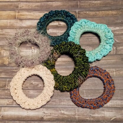 The Layla Hair Tie can be made in fingering, sport, dk, worsted or bulky yarn. Hook size, yardage, stitch count, finished size and gauge vary slightly for each yarn weight. These can be found in a handy chart in the pattern pdf.