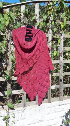 The shawl is 180 cm wide, worked from bottom to the top. The widening of the shawl is incorporated into the pattern.