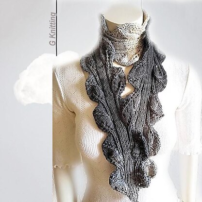 The item was created with a rib and leaf edge stitch pattern. The scarf can be used as an accessory item in every season.