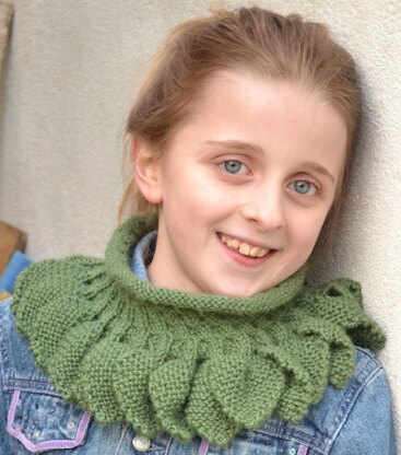 This children's cowl is knitted in one-piece, using both circular (for the neck piece) and two needles for the leaves. I used Debbie Bliss Blue Faced Leicester Aran, but other Aran (10ply) wools would work well. It takes approximately 125g of wool. The neck section has a simple cable stitch.