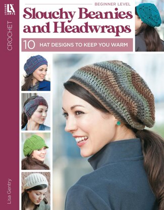 Leisure Arts Slouchy Beanies & Headwraps Crochet eBook- Enjoy creating this collection of 10 soft hats and headwraps with pretty shells, cables, ripples, and more. Designs include: basic beanie, shells beanie, cables beanie, newsboy beanie, lacy headwrap and more. Patterns include adult sizes small/medium and large/extra-large, fitting head circumferences between 19" and 21". Projects can be made using size 4 worsted or 5 bulky weight yarn with crochet hooks in sizes ranging between US H-8 and J-10, or 5 and 6mms. Includes round-by-round instructions for each design. Beginner to easy skill level. Originally published as: LEA5939 Leisure Arts Slouchy Beanies & Headwraps Crochet Book. 34 pages, PDF download.