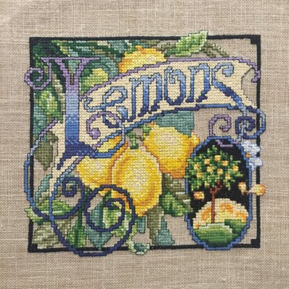 By Barbara Baatz Hillman. When life gives you lemons, decorate your home with this vibrant citrus-inspired cross stitch art! Is sure to brighten up any room. Make this piece for spring or summer holidays or for anyone who need a little cheer!\n