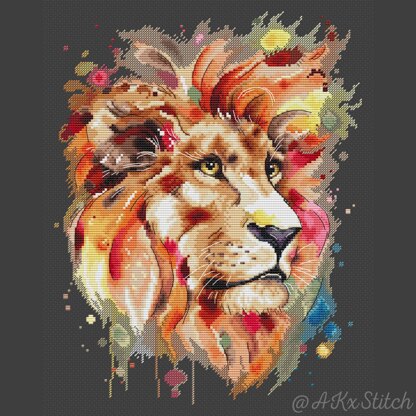 Watercolour Majestic Leo the Lion Cross Stitch. Bright Bold and Colourful Handmade gift idea for Leo, birthday present for Dad, Uncle or Father-in-Law. Fun and easy to follow embroidery chart.\n\nSize: 48 x 60 stitches\nStitched on Aida 14 count: 8w x 11h cm (3 x 4 in)\nDMC Threads: 5 solid colours (no blends)\nUsed stitches: full cross stitch, backstitch\nSkill level: Easy / Beginner\nStitch time: 3-5h\n\nCross stitch pattern in PDF, Instant Digital Download includes: 1) cover page with preview; 2) instructions, symbols key and shopping list (DMC thread colour numbers and estimates, as well as fabric options); 3) two black and white charts, with and without backstitch; 4) two colour charts, with and without backstitch; 5) single page PDF for Pattern Keeper (available on request).\n\nPlease note: This pattern is for personal use only - not for commercial use. You can't make copies of our charts to distribute (either as PDF or printed versions) but you can definitely sell your finished cross stitch work.