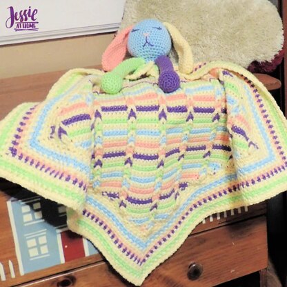 Leo the Lovey is my way to honor one of my favorite childhood books: Leo the Lop. This lop will bring love to any child! I wanted to make a corner lovey, and decided to go with a bunny. As I was making the ears, I thought of Leo the Lop and just knew I had to make the bunny lop-eared and name it Leo the Lovey. The blanket features a center of reversible Jacob's Ladder stitch, with a border of linen stitch.