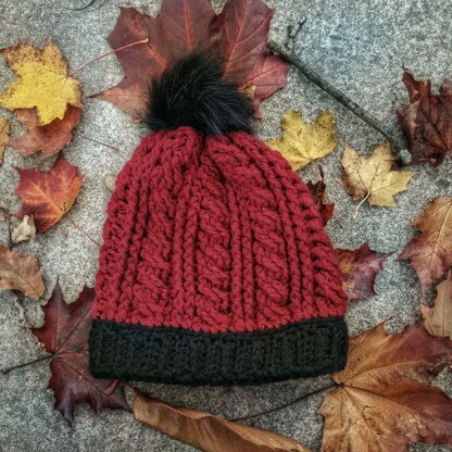 The Les Landes beanie is a cozy cabled hat made with chunky yarn. Its contrasting style was inspired by sports jerseys in rugby and horse racing. Whether you're supporting a team or just love the colour block style, this thick beanie will help keep you warm.