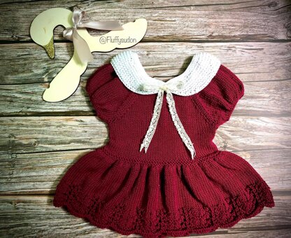 Leslie Peplum is worked in the round, bottom up. All pieces has been joined for yoke. The yoke is continued in the round and decreased in raglan shape. Collar is joined at the neck. Sizes: 6/9 mons – 1y – 2y – 3y – 4y – 5y – 6y -7y Hips circumference: 48-50-53-56-58-65-68-73cm Length (measured at back): 28-30-33-35-38-39-41-43cm Yarn: Gazzal Baby Cotton (50gr, 165m/ball) Number of balls: 3-3-4-4-5-5-6-6 (MC) and 1 (CC) Yardage: 400-950m Needles: Circular needles 40/60cm, Double Pointed Needles: 3,0mm; 3,75mm and 4,5mm Gauge: 24sts x 28 rows = 10 x 10cm in stocking stitch on 4mm needles Others: Button, ribbon, stitch holders, markers