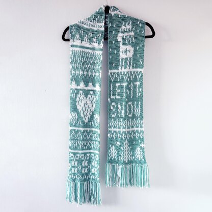The scarf is made using the mosaic method working each stitch as it corresponds to the matching square on the chart. A perfect Christmas accessory.