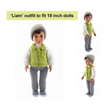 Dolls Outfit Knitting Pattern To Fit 18 inch Dolls Such As American Girl, Our Generation, Maplelea Girl And Others With The Same Proportions 18" 'Liam' outfit includes pants, sweater, sleeveless vest and beanie. The sweater is worked top down which means very little sewing up! The patterns are knit flat and seamed and are very easy to follow with clear instructions and photos. If you would like a knitting pattern to make your own basic 18" doll, the pattern can be found in my Lovecrafts store. All yarn amounts and step by step instructions are included in the patterns. ** SKILLS NEEDED TO COMPLETE ** HOW TO: Cast on Knit Purl Increase Decrease Cast off