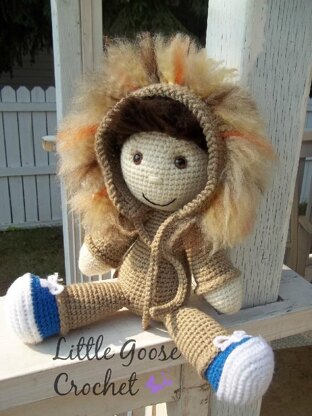Arms, legs, tail, hood and hood ears for the lion costume are made first and then they are all worked into the body on the appropriate rounds. This is a no sew pattern which makes him fun and easy to create.