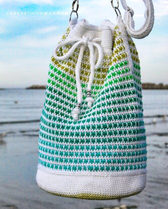 After the crocheting is complete, I walk you through the next steps of the bag making process, with written and photo tutorials on how to make a removable and/or adjustable bag, how to make your own base shaper, how to make the drawstring. The pattern also lists all materials required. I also provide a brief example of how I added lining to the inside of my bag, however the pattern does not walk you through the linin