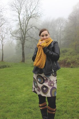 The generous sized Cowl is knitted in the round and can be worn around the neck, or over the head and shoulders as desired. With just a little ribbing for the edges, you soon get into the business of the cobnut stitch, and with no seam to sew up its a simple and satisfying knit.