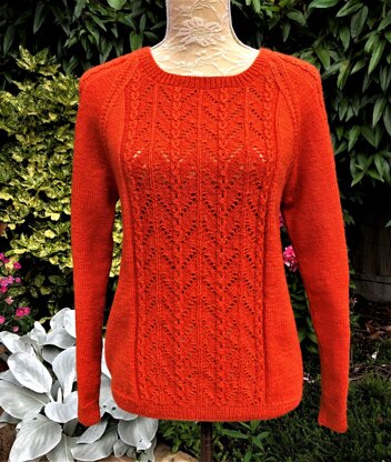 This is a very pretty 4 ply raglan sweater with a central panel on the back, front and sleeves with the remainder worked in stocking stitch. The pattern panel consists of easy eyelet "v"'s divided by 3 stitch twists (no cable needles). If you prefer, you could omit the panel on the back and instead work it all in stocking stitch - great for television knitting! Worked in a wool 4 ply yarn, but would work well in a synthetic or cotton yarn too. Worked bottom up and with full written instructions.