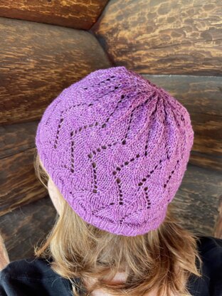 Lighter Skies hat features simple repeated lace that continues throughout the crown decreases. A lightweight, lacy hat perfect for not-too-cold winter days. There is a heavier weight version, Avalon Skies, for cooler days.