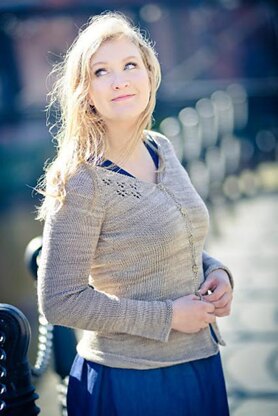 In a good friend, you often see something of yourself mirrored. It can be as small as a tiny glimpse, which sparks recognition and creates a bond. The lace on the right front of this cardigan gives that little glimpse of the bigger picture on the back, a flowery lace that brings to mind thoughts of summer and good times.