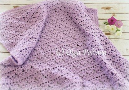This is a pattern for a baby blanket or afghan in lace design made with light worsted (category 3) yarn and size G/6 (4.25 mm) crochet hook. I used Snuggly Wuggly Big yarn by Loops & Threads. The finished blanket measures approximately 37 by 32 inches. The skill level is advanced beginner. This pattern can easily be adjusted to a bigger or smaller size. The multiple for the stitch is included in the pattern. The pattern is written in English, using the US crochet terminology. This pattern is my original design and it cannot be redistributed. However, you have the permission to sell finished items made from this pattern.
