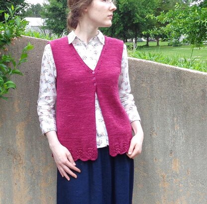 A happy color and simple details accentuate this cute vest, perfect for times you need a quick layer but not a cardigan.