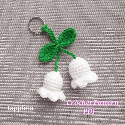Crochet Lilly of the Valley keychain, pattern PDF. These lovely lilies of the valley you can crochet in different colors. They can be used as car mirror hanging, bag charm, backpack charm, cute flowers keepsake, Birthday, Mother day gift handmade.