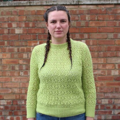 Lime Bitters is an all over lace sweater, the cropped version has set in slightly cropped sleeves and a cropped body, whilst the long version has full length sleeves and a flattering body length. The high neck adds to a smart polished look. The lace motif is simple and effective. With its’ all over texture this is a statement piece which is easy to dress up and down. A thoroughly enjoyable knit the lace is effective in both bold colours and toned down neutrals. Wear Lime Bitters with a casual summer skirt or under a smart pinafore dress for some winter sun.