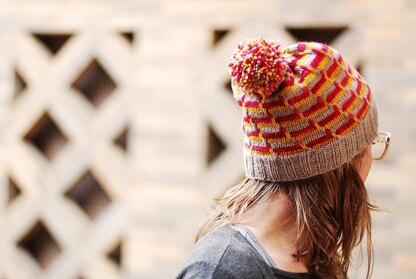 When I started thinking about how these three colors could play together in a hat, my mind immediately went to stacking bricks, and slipping stitches and movement. There's a swirly geometric loveliness to this pattern that's both soothing and interesting to work.