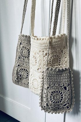 The pattern for both bags is based around a single motif-square worked 'in the round'. When making the top sections of the bag you will be working in rows. The work is turned between each row using turning chains. The final edgings are finished off with pretty bobbles and picot edging.