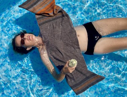 It starts with a border where all three stitch variations come into play, the middle part is knitted in a two-color linen stitch and so the grey and silver flow into each other and become one. Finally, the orange appears again to create a harmonious connection with the initial border.