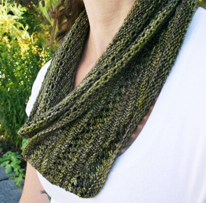 The finished size is a loop that is 13cm/5" deep and 150cm/60" around. It is knitted with one skein of Arroyo. While gauge for this pattern is easily adjusted, you may need additional yarn.