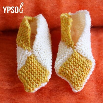The baby shoes are first knitted flat and then sewn to achieve the right shape. This design is very clever! Not very difficult for beginners but still interesting for advanced knitters.