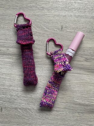 This quick and easy pattern came about when I wanted to carry my lip gloss with me at work, but don’t always have pockets to keep it in. It’s tall and doesn’t fit in traditional lip balm/lipstick pouches. Using left over yarn, this is a small, quick project that comes together in no time.