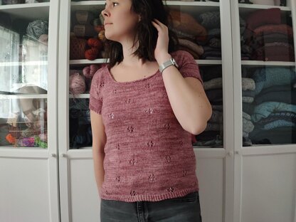 Yarn : This top is knit with a fingering weight yarn (V1: Inès from Woolissime in Rosa colorway), (V2 : Base Extrafine fing from Tricot&stitch in Dream knitting retreat colorway). Approx. 655, 732 (810, 890, 965) 1040, 1120, 1190 m / 720, 800 (885, 975, 1055) 1140, 1225, 1305 yards.