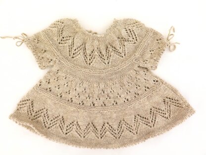 A delicate lace design that is not too challenging. The pattern is knit flat and has repeating zigzag lace panels on both skirt and yoke.