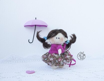 Knitted doll toy. The arms can move, the legs can rotate, the head is movable