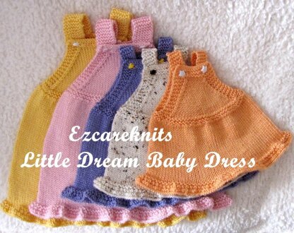 Little Dream Baby Dress – was a dream of mine for little girls. Little dream is an easy and super cute knitting pattern. It has step by step written instructions and I am happy to help with questions. Little dream comes in 5 sizes ~ Newborn, 3 months, 6 months, 12 months and 18 months. It requires worsted weight yarn and is knitted on US 8 or (5mm) circular knitting needles. Great gift for a baby shower.