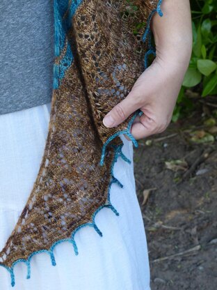 Little Dreams is a delicate crescent shawl that was inspired by the yarn color way names. If you are a follower of mine then you will know that I have a love for unique hand dyed yarns from small indie dyers. I fell in love with this beautiful blue from On The Round the minute that I saw it. She called it Narwal and I knew that I wanted to use it in a soft shawl for spring. The little textured stitch used in the body is called Little Birds but I rather thought that it looked more like a whale’s tail splashing into the water and I immediately thought of Narwal! I paired it with a skein of earthy brown Pine Cone to keep it grounded. The edge is made up with a simple lace stitch that blends right into the contrasting picot border. I do include instructions for a simple garter border if you are not a fan of the picot!