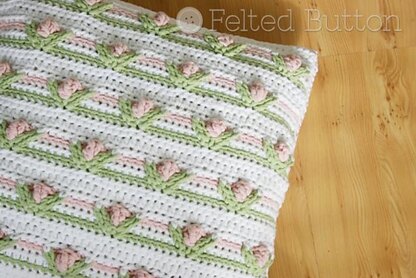 The Little Dutch Girl Pillow and Blanket crochet pattern helps you make a sweet, feminine blanket of flowers reminiscent of rows of tulips in a Dutch countryside.What a perfect gift for the new little baby girl in your life. and the complete pillow instructions help you make a 16 inch square pillow for any spot in your home--be it shabby cottage chic or elegant Victorian. This is the kind of blanket that instantly becomes a family heirloom. The pattern also includes instructions for working up a blanket in any size you choose.