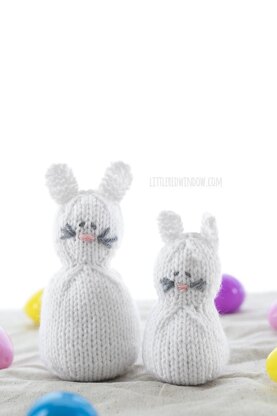 This adorable Easter bunny knitting pattern is a perfect Spring knit, you can knit the Mama and baby bunnies in no time with this easy Easter knitting pattern! These cute little bunnies are knit in the round. The pattern specifies double pointed needles but you can also knit them with magic loop! The pattern includes detailed instructions for both the mama bunny and the baby bunny (otherwise known as "big" and "small) and step by step photos. We recommend adding some dried beans to the bottom of your knit Easter bunnies so they stand up nicely on their own!