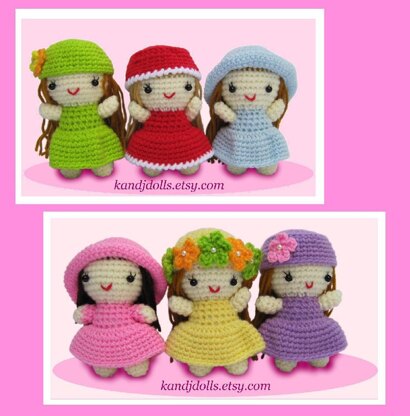 This pattern is written in English (using US crochet terms). It is 10 pages long with very detailed instructions and 26 images to help you make these Little Girls.